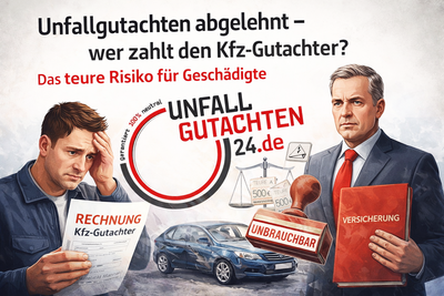 Wird das Unfallgutachten von der gegnerischen Versicherung als „unbrauchbar“ eingestuft und ist diese Einschätzung rechtlich berechtigt, bleibt der Geschädigte dennoch zur Zahlung des Gutachterhonorars verpflichtet. Gleichzeitig droht, dass die Versicherung die Kosten ganz oder teilweise nicht übernimmt.